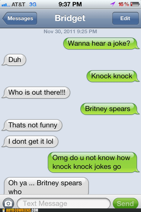 No matter the reason, they work. Knock knock jokes begin with the teller saying 'knock knock!' the other participant responds by saying 'who's there?' for many years, knock knock jokes were primarily considered as children's jokes. When teasing and playing around with your boyfriend, these jokes are a great way to lighten up the atmosphere with some silliness that will be sure to have. A simple to understand starting point for kids that are getting started and learning this format of joke. Enough, it is the best present for my mother in law.